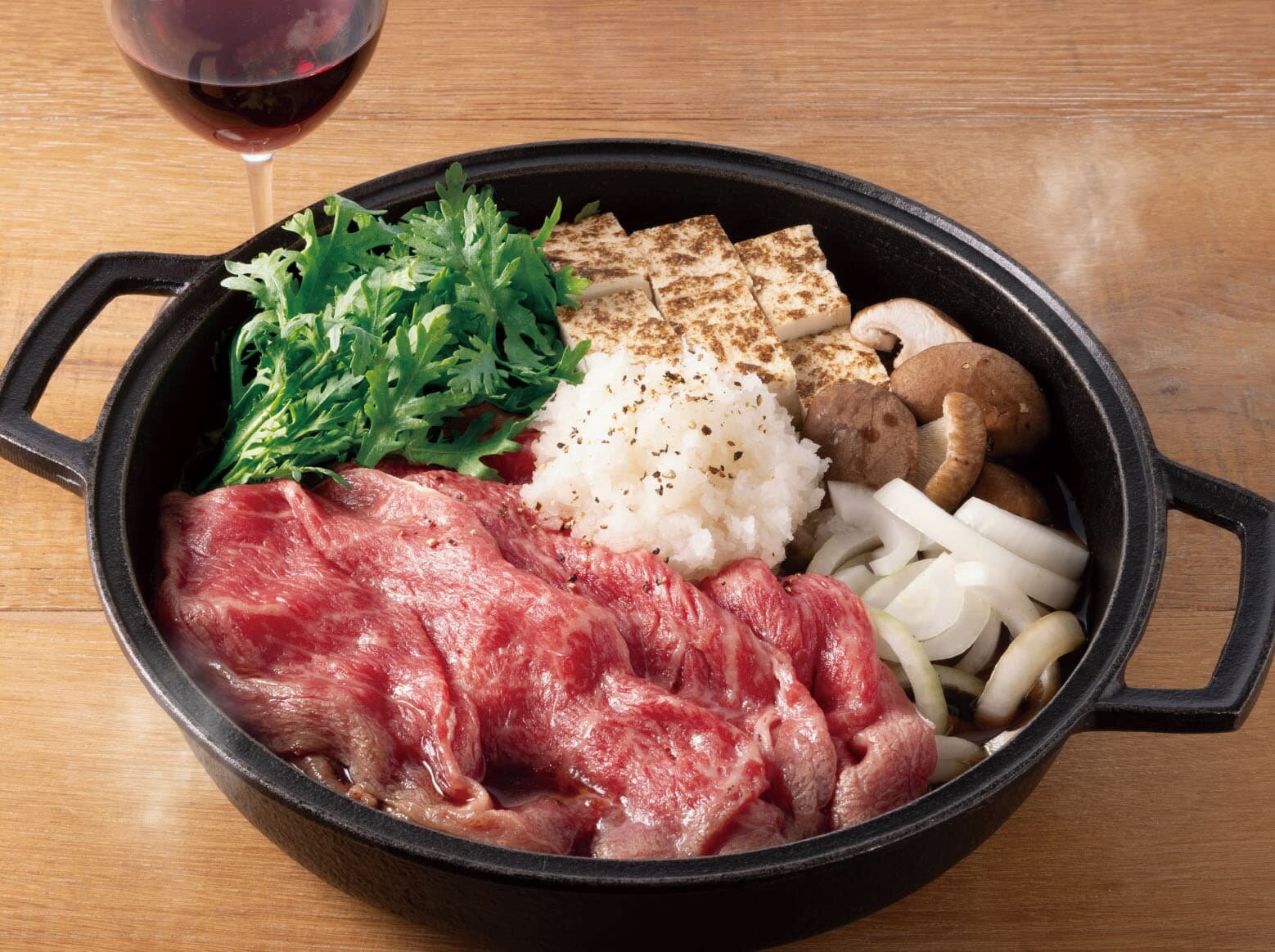 焼き豆腐はひと口大に切る。 - 鍋にたまねぎとしいたけ、焼き豆腐を並べ、牛肉を広げてのせる。大根おろしをのせてAを回しかけ、火にかける。