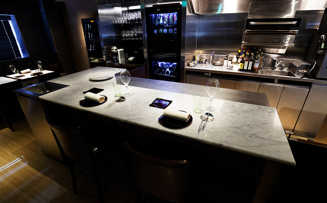 シェフが調理する手元を目の当たりにできるシェフズテーブルは、予約困難な特等席。シェフ直々のアテンドが独占できる楽しさも。