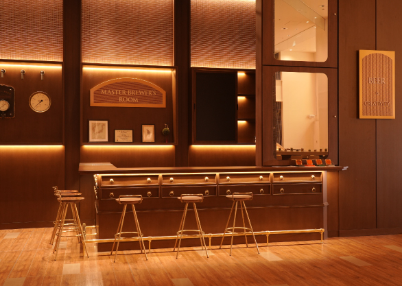Space empowering the five senses to richly savor beer created on a real-time basis from original ingredients and brewing equipment produced in Germany. In the Master Brewer’s Room, visitors may engage in direct exchanges with the Chief Experience Brewer depending upon when they arrive.